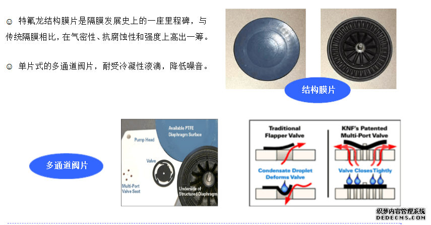 多通道特氟龍閥片特氟龍泵頭 答:一個(gè)安裝在偏心曲軸上的彈性膜片(見(jiàn)圖)在電機(jī)的帶動(dòng)下做上下往復(fù)運(yùn)動(dòng),使得腔體發(fā)生形變,實(shí)現(xiàn)介質(zhì)的抽入和排出。泵在轉(zhuǎn)移,疏散及壓縮的過(guò)程完全無(wú)油,實(shí)現(xiàn)無(wú)污染傳輸。